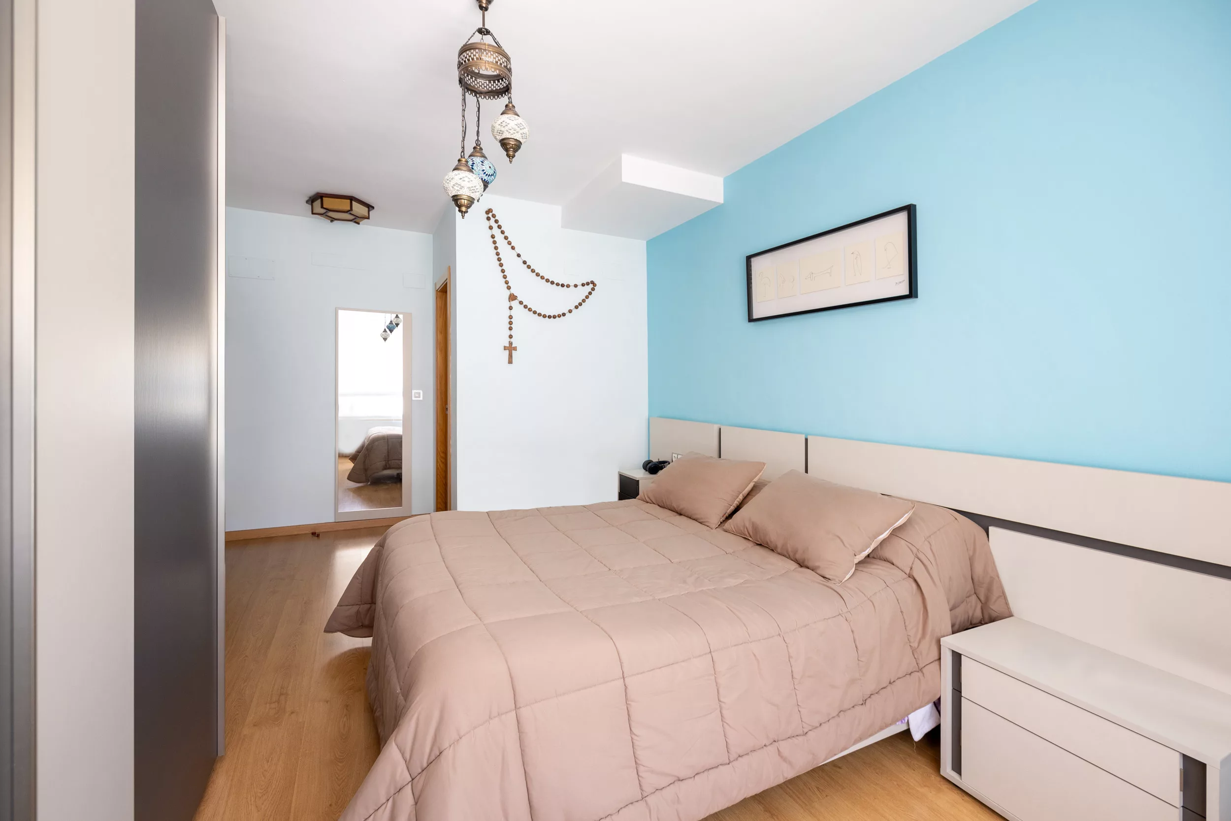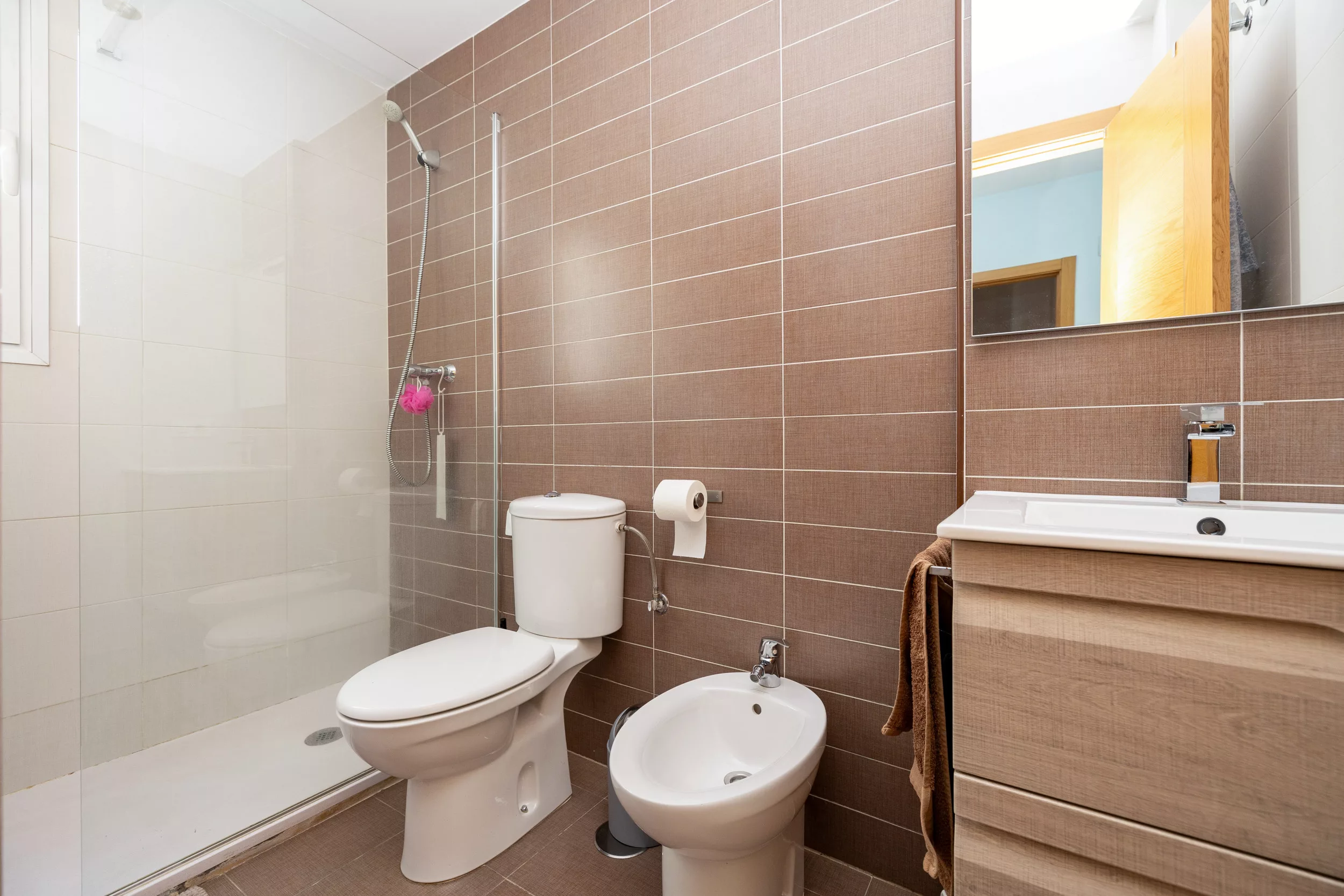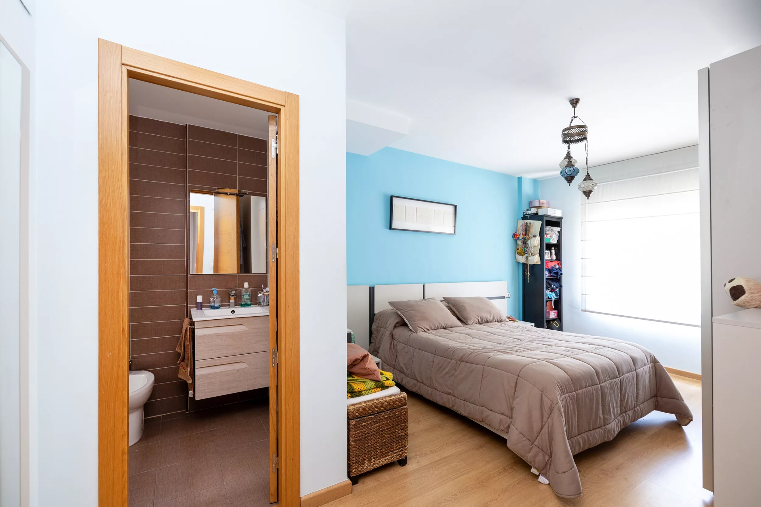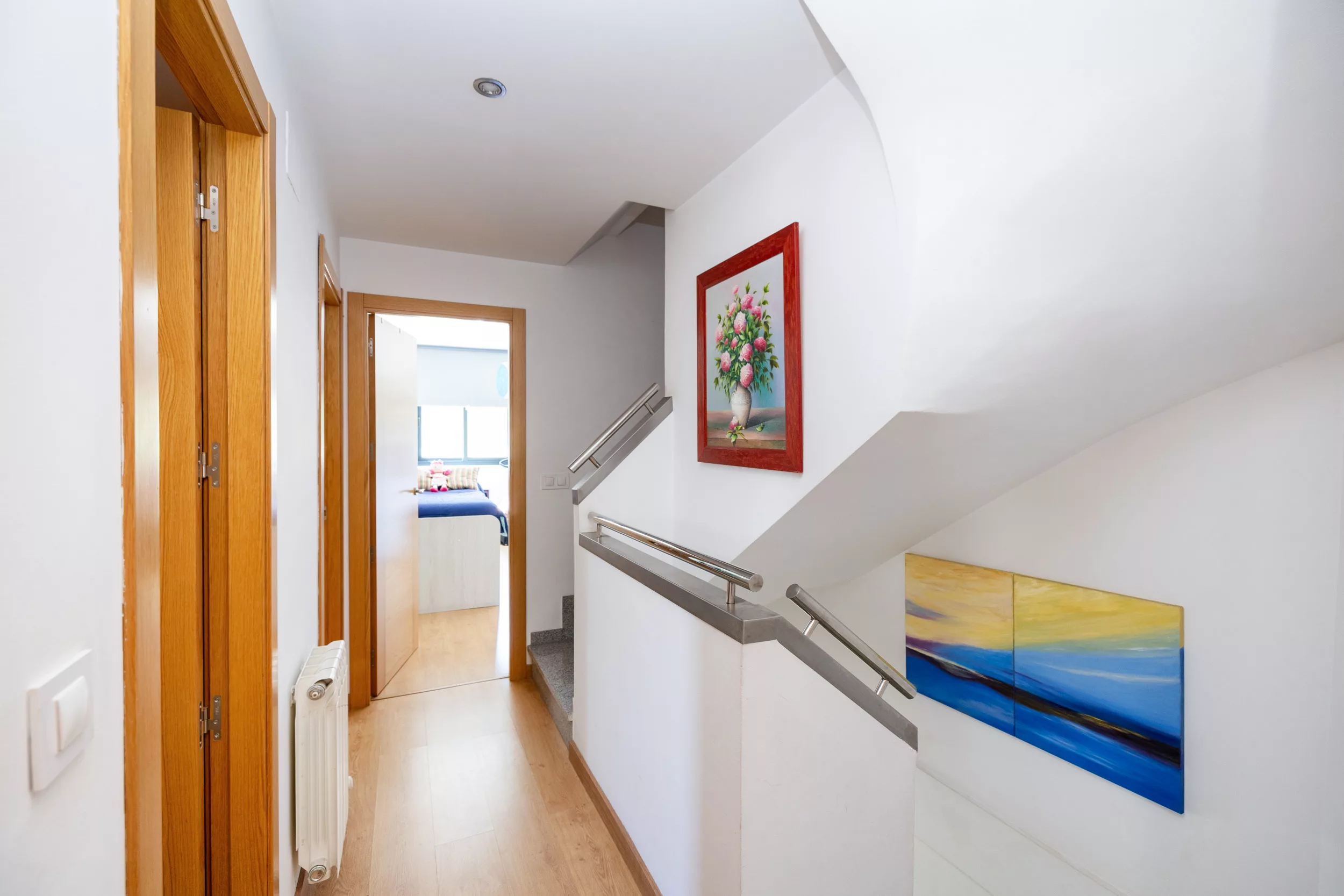 La primera planta cuenta con tres dormitorios espaciosos, el principal con baño en suite con plato de ducha y otro baño con bañera.