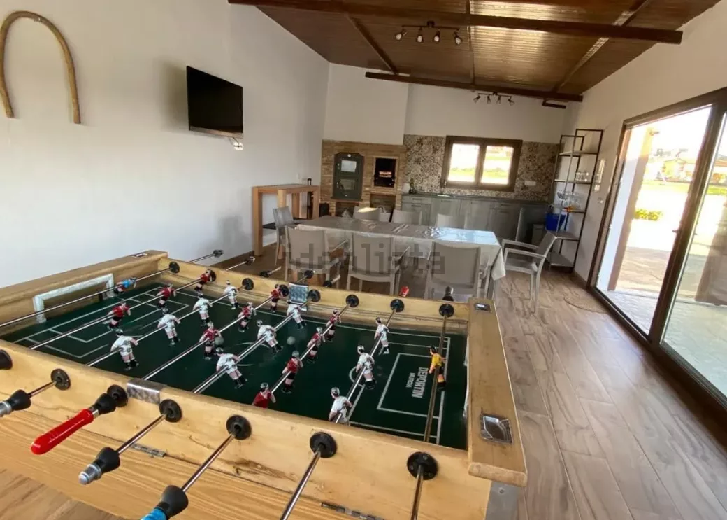 En su exterior la finca cuenta con zona de aparcamiento con capacidad para albergar varios vehículos, y otra construcción frente a la principal, una gran estancia acondicionada como salón y zona de ocio, equipada con cocina dotada de todo el menaje y chimenea de leña y horno, muy acogedora y perfecta para el periodo estival, ideal para reuniones con familiares o amigos.