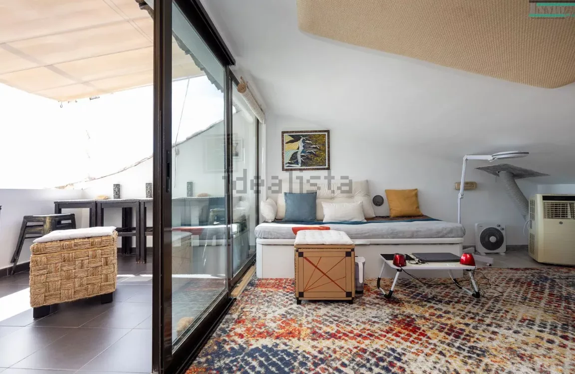 Dispone aproximadamente de 100 metros cuadrados distribuidos en 3 plantas, siendo la última abuhardillada, ideal terraza con vistas panorámicas.